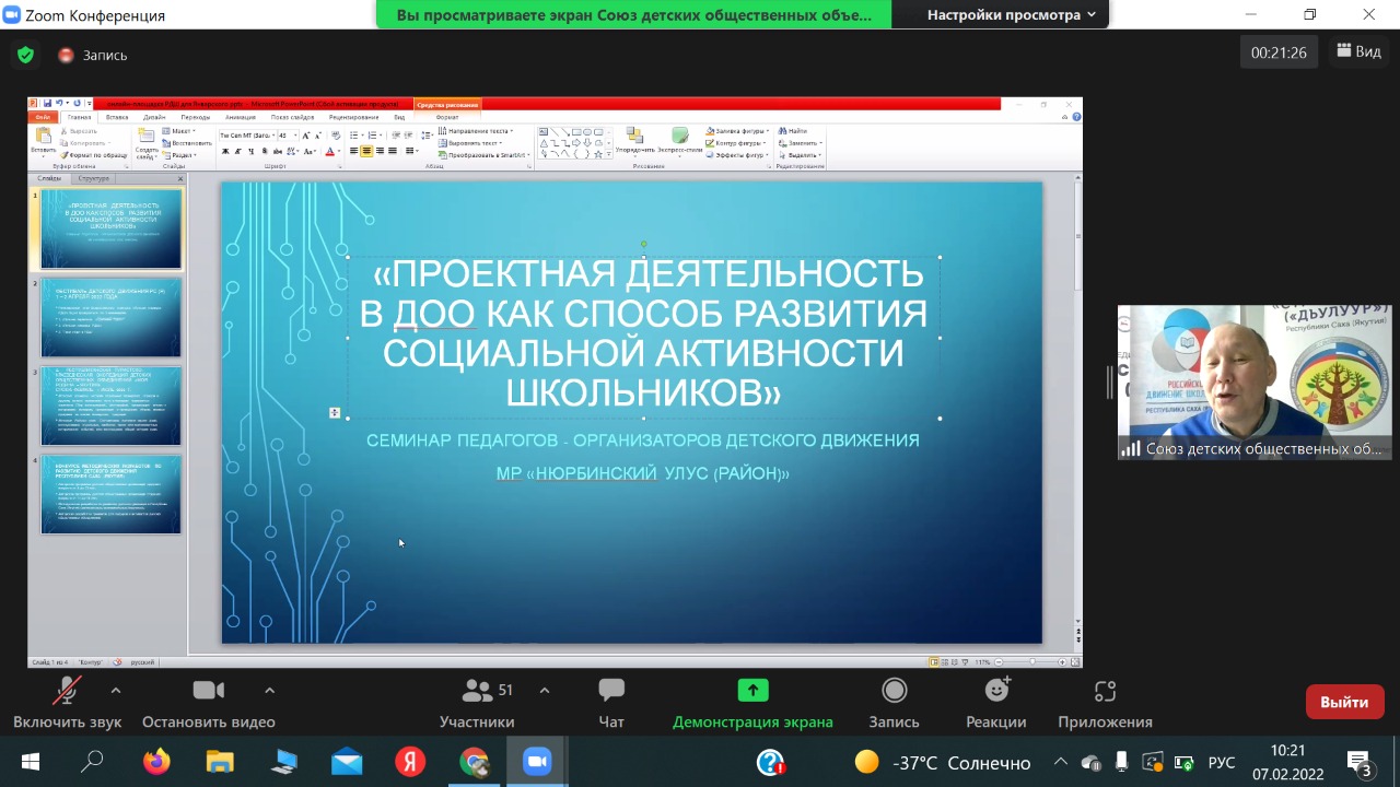 7 февраля в рамках  Февральского совещания работников образованияНюрбинского района «Стратегические подходы в совершенствовании методической работы в условиях обновленных ФГОС» проведен семинар на тему «Проектная деятельность в детской общественной организации  как способ развития социальной активности школьников».