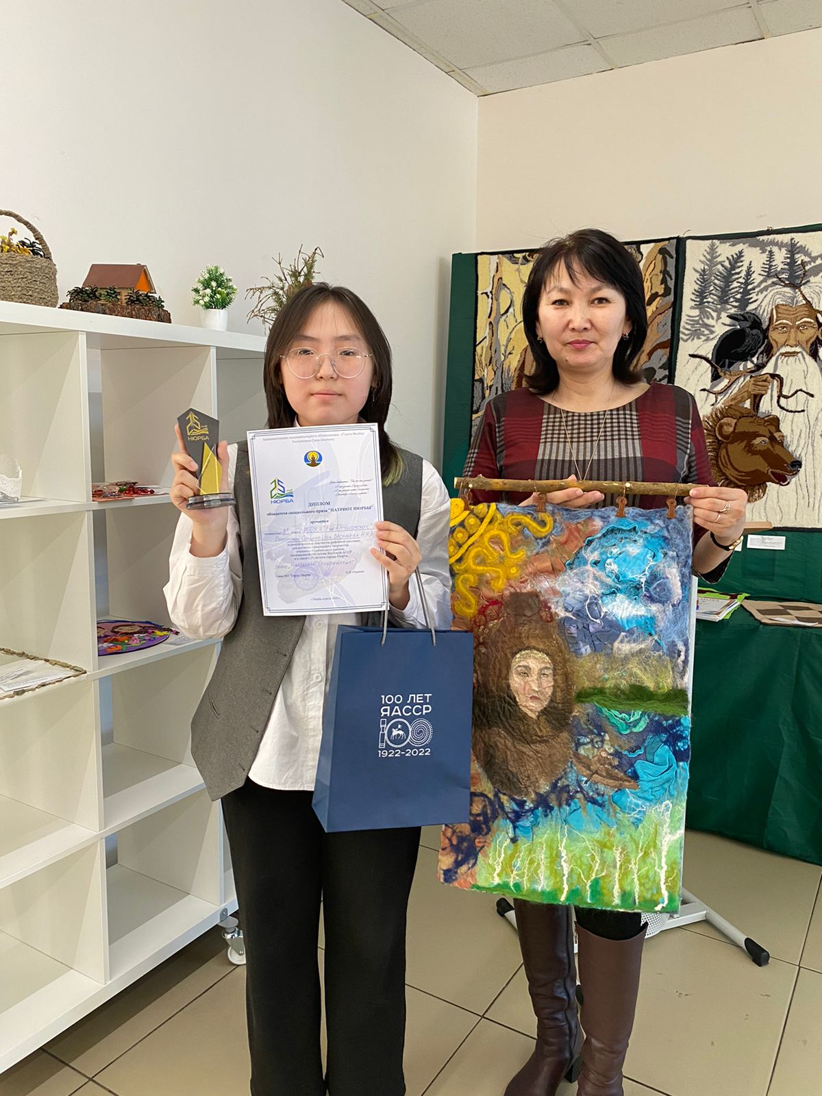 1 место работа Панно «Ньырбакаан» Охлопкова Сардана, 8 класс НТЛ, руководитель Васильева Нюргуяна Николаевна