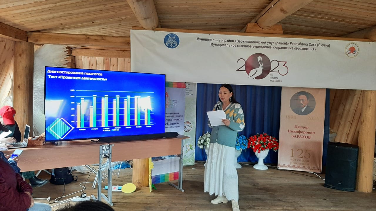 Наш центр представляла Егорова Марина Семеновна, старший методист 1 кв.категории. Она имеет 23 года педагогического стажа, обладатель нагрудного знака «Отличник образования РС(Я)», победитель в номинации «Методист-новатор» Всероссийского конкурса «Образовательная организация XXI века. Лига лидеров – 2018», обладатель грантов республиканских педагогических ярмарок «Сельская школа&образовательная марка» в 2018г. и 2022г., а также соавтор проекта «Создание серий анимационного фильма «Эьээ Мандар уорэ5э» о традициях и культуре якутов», который в этом году стал победителем конкурса Гранта Главы Республики Саха (Якутия) в направлении «поддержка проектов, направленных на популяризацию государственных и официальных языков РС(Я)».