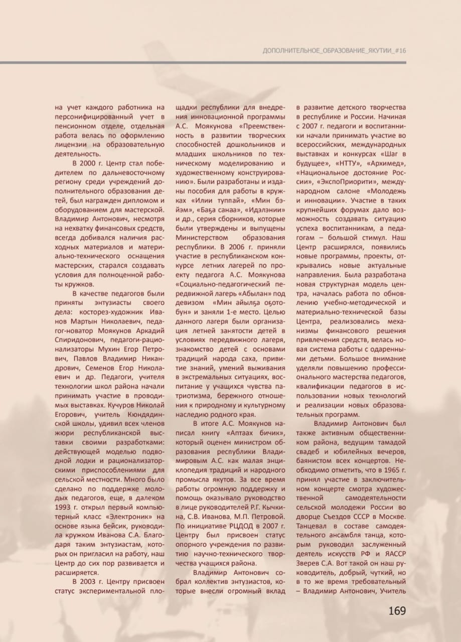 📍В статье дается подробное описание о развитии детского технического творчества в Нюрбинском районе, у истоков развития которого стояли наши ветераны-педагоги: Семенов Николай Дмитриевич, Тихонов Михаил Афанасьевич и Никифоров Владимир Антонович.