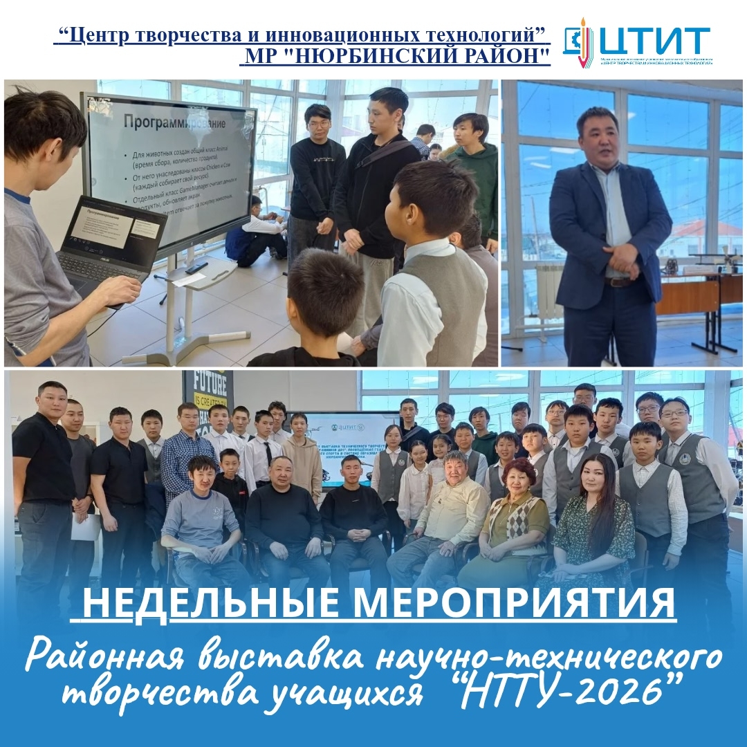 Сегодня, 18 марта, стартовал первый день районной выставки научно — технического творчества учащихся «НТТУ-2026», посвященной Году детского спорта в системе образования Нюрбинского района.