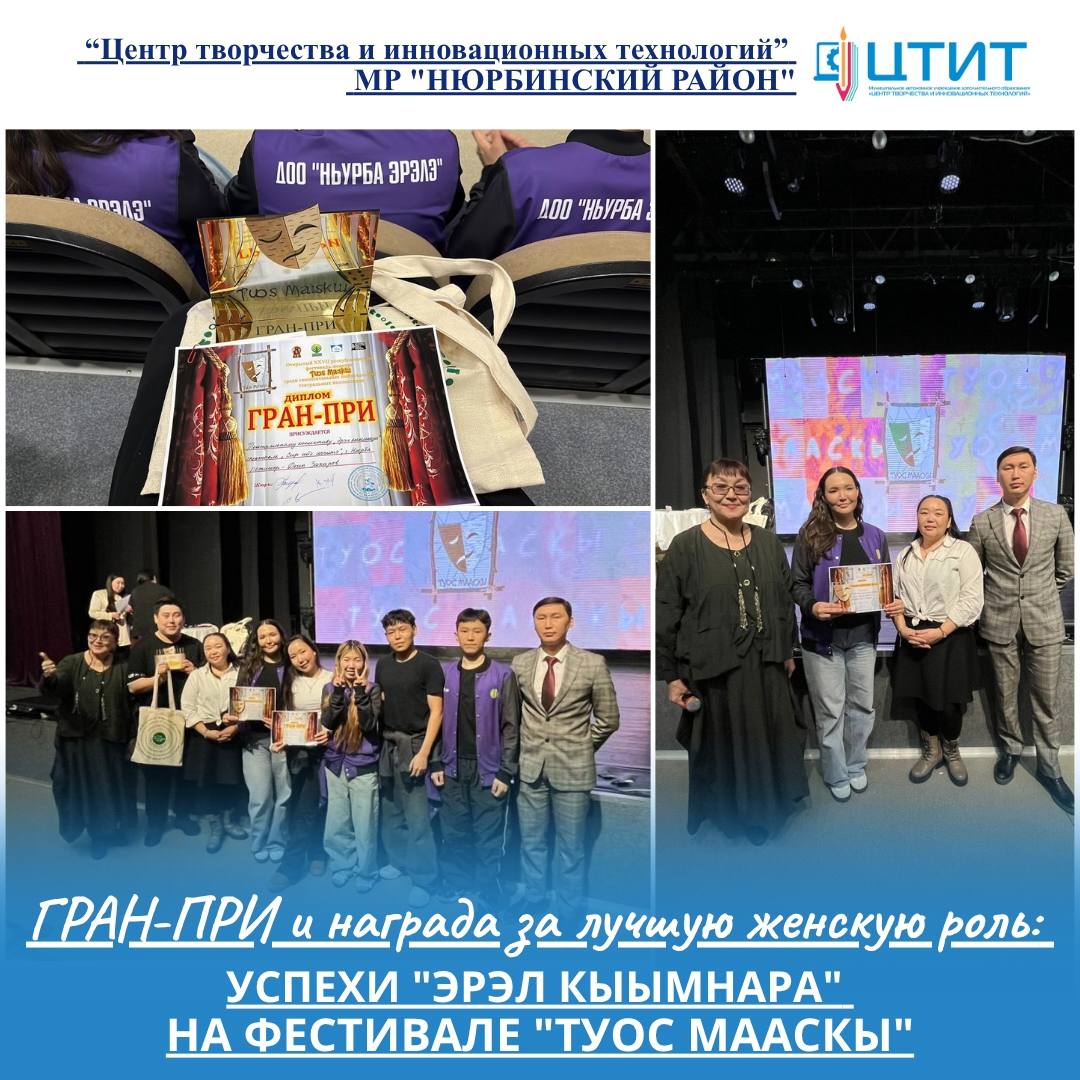 Наши юные актеры приняли участие в XXVII республиканском фестивале-конкурсе «ТУОС МААСКЫ», который прошел 28 марта в селе Майа. Благодаря талантам, упорству и творческому настрою, они завоевали главный приз — Гран-при фестиваля!