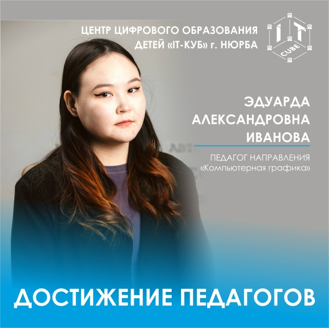 Эдуарда Александровна Иванова, педагог Центра цифрового образования детей «IT-Куб» города Нюрба направления «Компьютерная графика», успешно приняла участие и получила диплом I степени во Всероссийском конкурсе «Мастер-классы и практикумы в ДОО — 2026» Тема представленной работы: Мастер-класс для детей «Искусственный интеллект: …