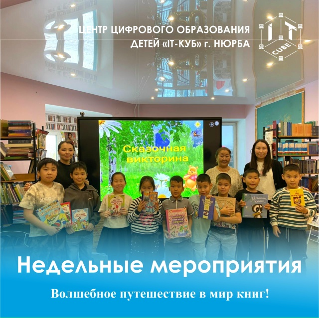 23 октября 2025 года, воспитанники направлений «Счёт и логика» под руководством педагога Айсены Алексеевны Аланаевой и «Программирование на Scratch» под руководством педагога Сайыыны Анатольевны Титигировой посетили МКУ «Нюрбинскую Центральную библиотеку» имени Федота Григорьевича Сафронова. Ребятам провели познавательную экскурсию по библиотеке, …