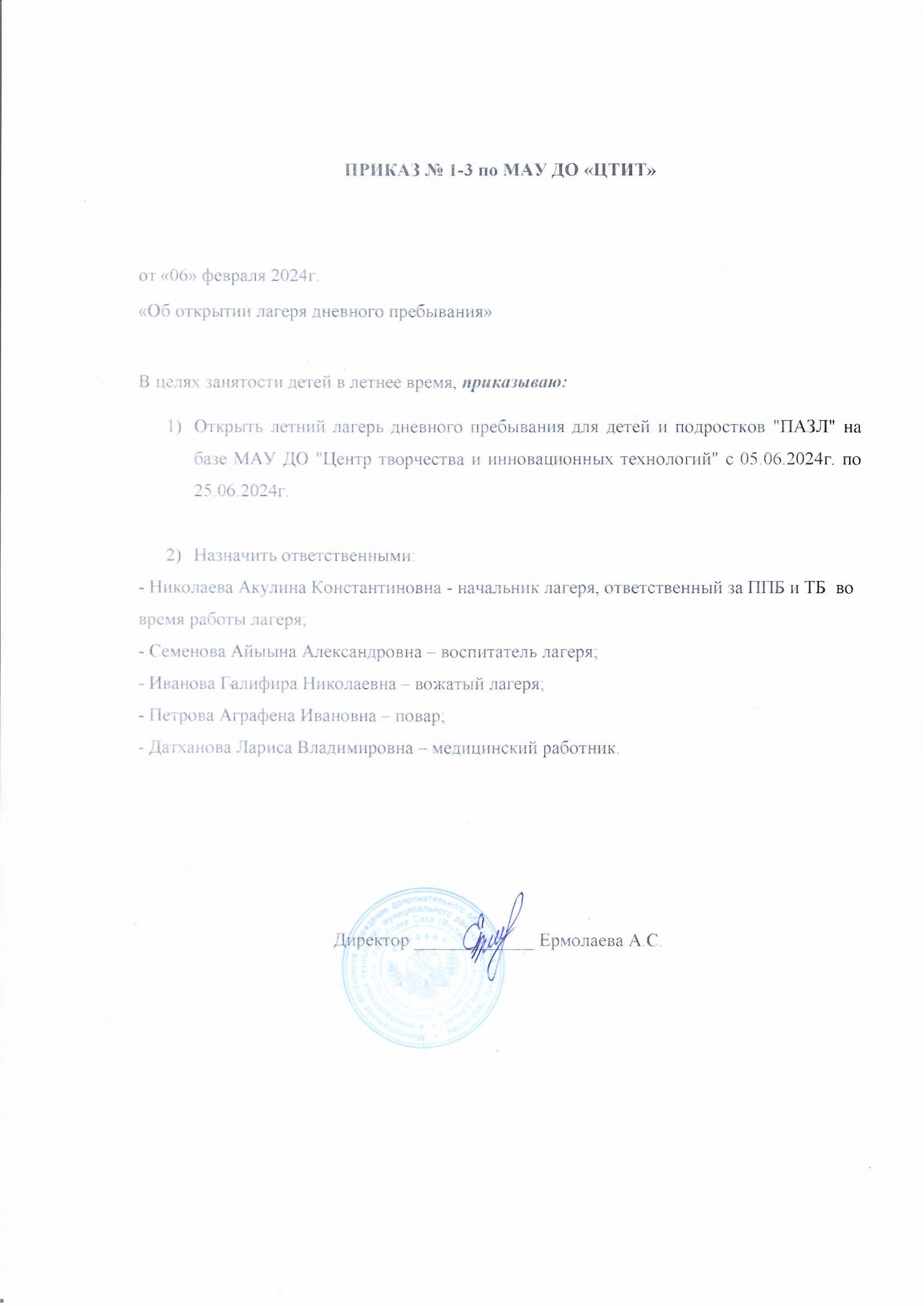 382-oi-214-25-p-24-1Приказ об открытии лагеря дневного пребывания «ПАЗЛ»